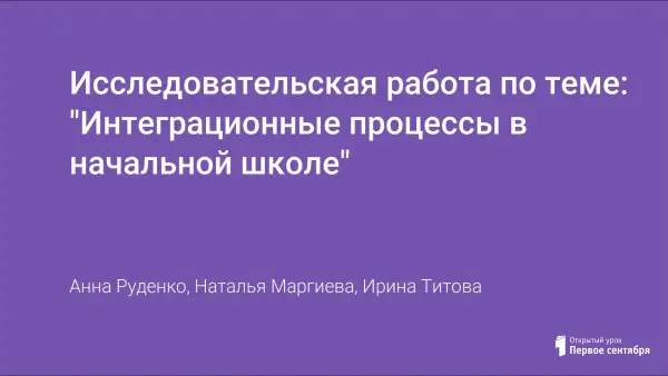 Исследовательская работа по теме: "Интеграционные процессы в начальной школе"