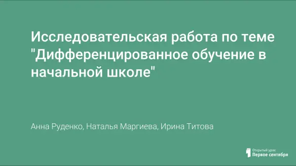 Исследовательская работа по теме "Дифференцированное обучение в начальной школе"