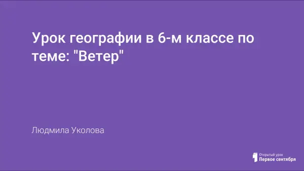 В ходе урока применяется фронтальная и групповая формы работы. Учащиеся с помощью учителя устанавливают причину возникновения ветра, его основные характеристики, знакомятся с разнообразием ветров нашей планеты.