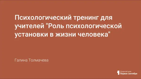 Данный тренинг знакомит учителей с возможностью изменения жизненного сценария, объясняет значимость различных установок в жизни и психологическое содержание сказок как установок на будущее. Дает установку на успешное взаимодействие с учащимися. Тренинг проводился как мастер-класс в конкурсе "Учитель года".