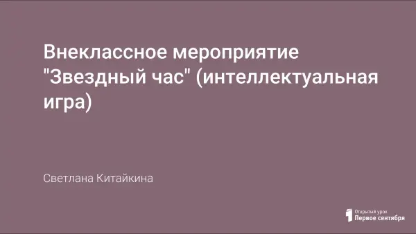 Внеклассное мероприятие (интеллектуальная игра) "Звездный час" проводилось для детей 3-4-х классов с родителями. Данная игра позволяет расширить знания детей о породах собак, о птицах и деревьях своего края; проверить знания по чтению и изобразительному искусству; прививать детям интерес к участию в семейных конкурсах и викторинах.