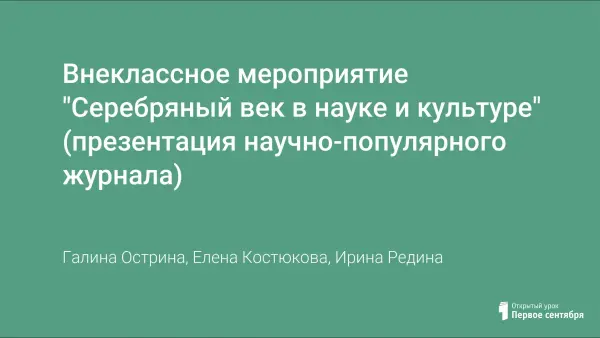 Внеклассное мероприятие "Серебряный век в науке и культуре" (презентация научно-популярного журнала)
