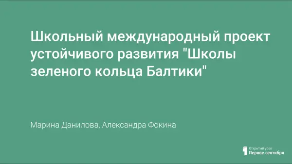 Школьный международный проект устойчивого развития "Школы зеленого кольца Балтики"