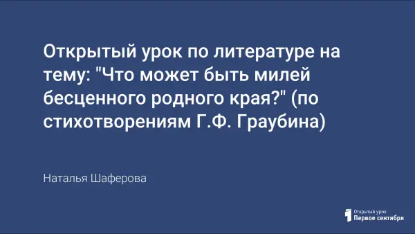 Урок знакомит с личностью и творчеством забайкальского поэта Георгия Рудольфовича Граубина, раскрывает многогранность его таланта, выраженного в тематике его стихотворений, показывает любовь поэта к родному краю, призывает к бережному отношению к природе.