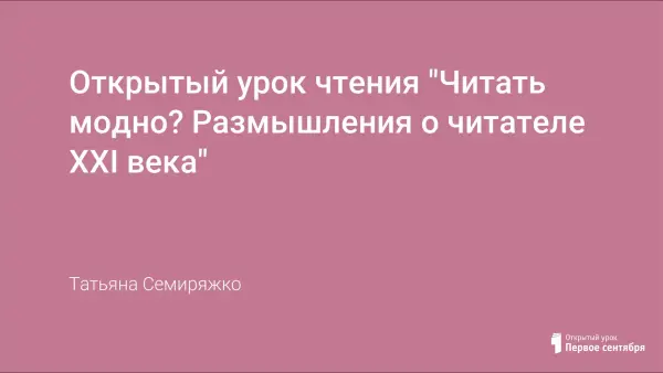Сегодняшние школьники мало читают художественную литературу. Книгу часто заменяет компьютер. Традиционными стали открытые уроки чтения, помогающие познакомиться с основными тенденциями развития современного литературного процесса, с шедеврами мировой классики. Урок проходит в форме дискуссии с использованием ученических презентаций.