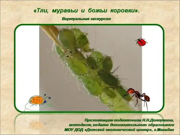 Цель занятия – познакомить кружковцев с вредителями комнатных растений – тлями, особенностями их биологии и экологии. При изучении темы внимание акцентируется на экологическом аспекте проблемы борьбы человека с насекомыми-вредителями. Выполнение практических работ позволяет познакомить кружковцев с биологическими методами борьбы с вредителем.