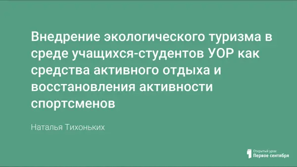 Выявив проблемы современного спорта в вопросе восстановления спортсменов, была начата работа над информационным проектом "Скажем "Да!" экотуризму", целью которого стало установление возможности использования долины ста источников Шумак, как маршрута экологического туризма и средства активного отдыха для восстановления активности спортсменов.
