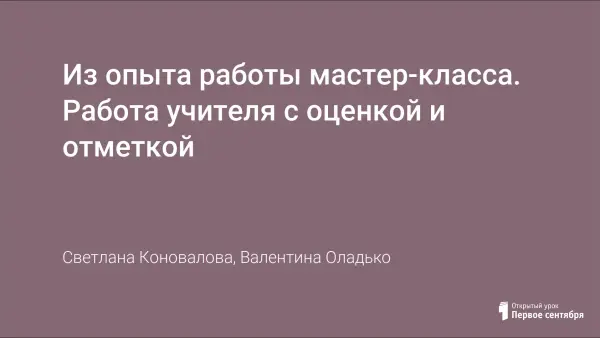 Оценка не равна отметке - это в своих исследованиях и попытались доказать авторы мастер-класса, описав свою работу с оценкой и отметкой по составленному для себя плану.