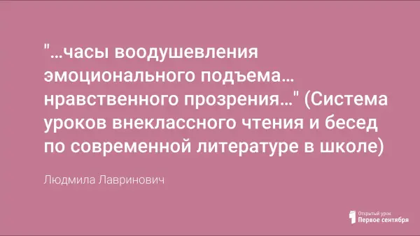 Программа по литературе дает примерный список книг для самостоятельного чтения школьников и не предлагает какой-нибудь конкретной системы уроков внеклассного чтения и бесед по современной литературе, то есть в программно-методическом обеспечении курса литературы не отведено должного внимания этим урокам. Данная статья - попытка учителя представить систему уроков внеклассного чтения и бесед по современной литературе в 5–11-х классах средней школы. Цель этих уроков - помочь сориентироваться детям в огромном книжном море, развить вкус к умному, серьезному чтению.