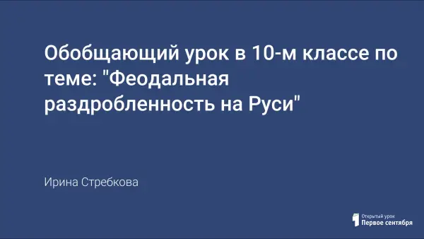 Предложен конспект урока истории в 10-м классе. Урок повторяет и систематизирует пройденный материал, закрепляет понятия: феодальная раздробленность, удельные княжества, политическая организация удельных княжеств, татаро-монгольское иго, повторение важнейших дат.