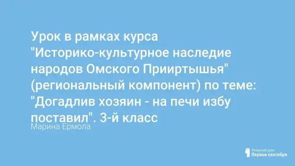 Урок знакомит учащихся 3-го класса с историко-культурным наследием народов Омского Прииртышья.
