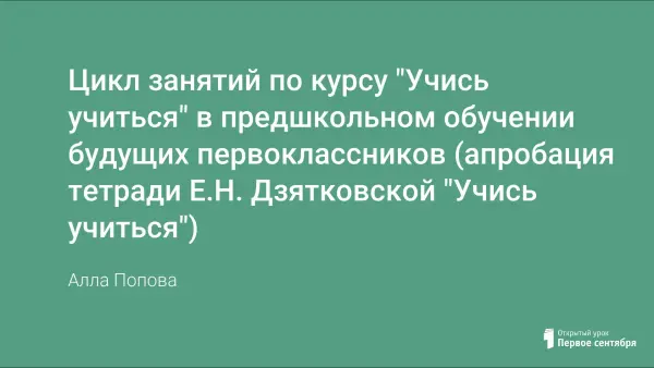 Цикл занятий по курсу "Учись учиться" в предшкольном обучении будущих первоклассников (апробация тетради Е.Н. Дзятковской "Учись учиться")