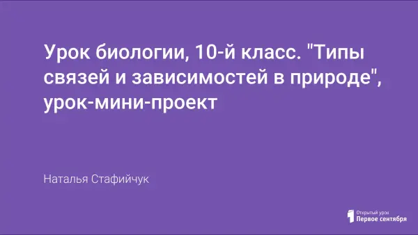 На уроке ученики рассматривают типы взаимоотношений между организмами и выявляют их значение. В групповой деятельности ученики используют исследовательский метод работы, учатся оформлять творческую работу в виде проекта, публично защищать результаты творческой деятельности.