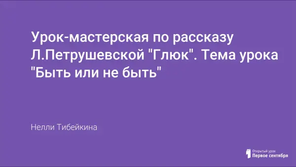 Урок-мастерская по литературе «Быть или не быть» по рассказу Л.Петрушевской «Глюк». Данная форма проведения урока направлена на развитие ассоциативно-образного мышления, развитие воображения, фантазии. Авантюрная завязка урока вызывает интерес к рассказу. Вопросы и задания заставляют думать и размышлять, каждый ребенок имеет право на собственное мнение.