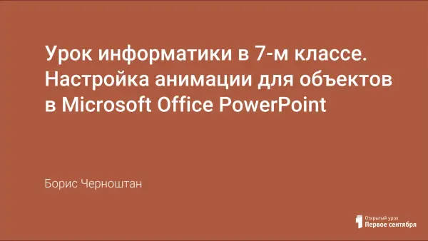 Урок предназначен для учащихся 7-го класса при изучении темы Microsoft Office PowerPoint, позволяет наглядно и не обычно, рассмотреть настройку анимации в презентации, подчеркнув отличие анимации входа и выхода, закрепить работу с автофигурами и способа их создания и настройки.