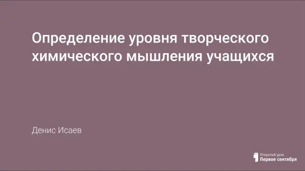В теоретической части работы показана возможность формирования творческого химического мышления и основные способы его диагностики. Представлен опыт определения уровня творческого мышления учащихся по адаптированной методике профессора О.С. Зайцева (показаны необходимые подсчеты, определены параметры творческого химического мышления конкретного ученика 8-го класса). Анализ сочинений или ответов на творческие вопросы проводился по следующим показателям: научность описания, уровень развития письменной речи, доля химического аппарата, междисциплинарный характер и обновляемость понятийного аппарата.