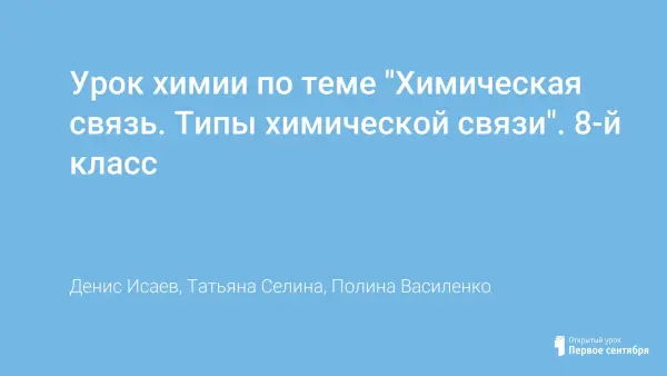 Урок химии по теме "Химическая связь. Типы химической связи". 8-й класс