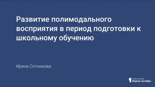 Развитие полимодального восприятия в период подготовки к школьному обучению объясняется насущными потребностями личностно-ориентированного и здоровьесберегающего обучения. Исходный уровень подготовленности детей к школе оказывает огромное влияние на успешность всего последующего обучения. Одна из задач современного образования заключается в том, чтобы находить такие приемы обучения, которые в наибольшей степени соответствовали бы индивидуально-типологическим особенностям детей, к которым можно отнести особенности восприятия и переработки информации.