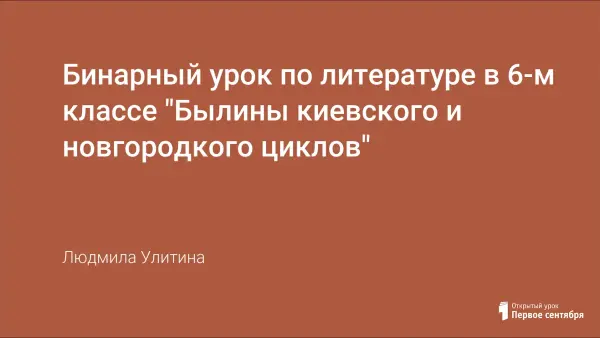 Бинарный урок по литературе в 6-м классе "Былины киевского и новгородкого циклов"