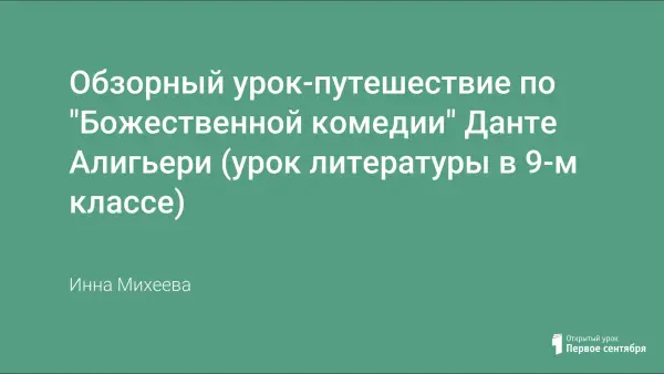 На уроке мы совершим необыкновенное путешествие в XIV век: великий итальянский поэт поведет нас по своему произведению, спустимся вместе с ним в "Ад" и поднимемся в "Рай", познакомимся с обитателями этих царств. А ещё нам предстоит выяснить актуальность изучения данного произведения в XXI веке.