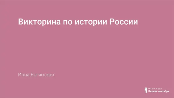 Цель проведения викторины: повышение интереса учащихся к истории России. Задачи: активизация творческих и познавательных способностей учащихся; популяризация исторических знаний; воспитание патриотизма.