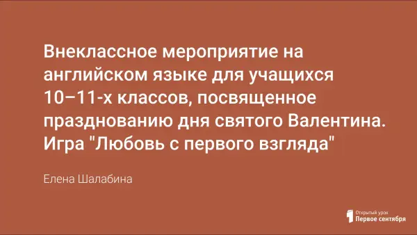 Празднование Дня святого Валентина становится всё популярней в нашей стране. Соревнование проводилось среди учащихся 10–11-х филологических классов с углубленным изучением английского языка. Мероприятие проходило в актовом зале с использованием лазерного проектора и большого экрана. В соревновании принимали участие 2 ведущих, 3 девушки и 3 юноши. Во время праздника звучали песни на английском языке в исполнении учащихся старших классов.