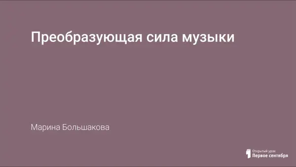 Урок обобщает представление учащихся о связях музыки и жизни, о социальной роли музыки. На уроке рассматриваются яркие примеры воздействия музыки на отдельных людей, на целые народы. Музыка должна помочь подростку укрепить представления о ней, как необходимой части жизни.