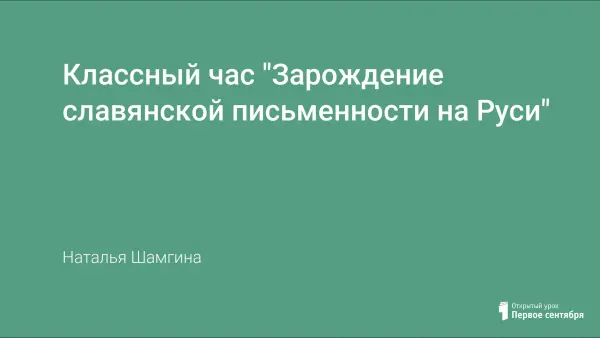 Классный час в начальной школе знакомит учащихся с историей возникновения славянской письменности на Руси, с первыми книгами.