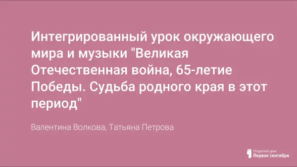 Интегрированный урок окружающего мира и музыки "Великая Отечественная война, 65-летие Победы. Судьба родного края в этот период"