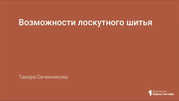 Цель урока: познакомить учащихся с технологией изготовления изделий в технике «пэчворк» и изготовить наволочку на диванную подушку. Для достижения цели надо задать следующие вопросы и попробовать реализовать их на практике: как можно получить новые вещи без особых затрат; как решить актуальную проблему утилизации отходов, через переработку вторичного сырья; как сохранить природные ресурсы. Мода меняется стремительно, дети вырастают и много одежды из нашего гардероба остаётся не у дел. А технология лоскутного шитья поможет реализовать нам вышеизложенные задачи.