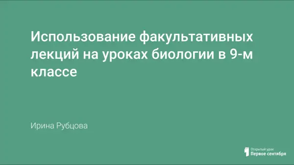 Школьная факультативная лекция - метод обучения, отвечающий требованиям классического урока изучения нового материала и являющийся частью лекционно-семинарской системы. Ее использование на уроках общей биологии в 9-м классе позволяет формировать у учащихся умение планировать ответ, выделять основные моменты лекции, формулировать выводы, успешно усваивать сложный и объемный материал. В статье рассмотрен пример использования факультативной лекции на уроке по теме "Деление клетки: митоз и мейоз".