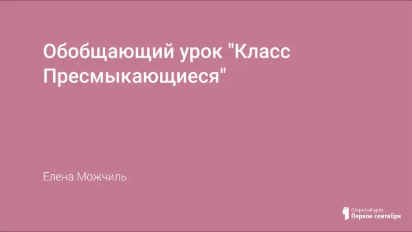 Урок обобщяет и систематизирует знания учащихся о пресмыкающихся. Повторяет изученный материал с целью закрепления базовых знаний о внутреннем строении пресмыкающихся.