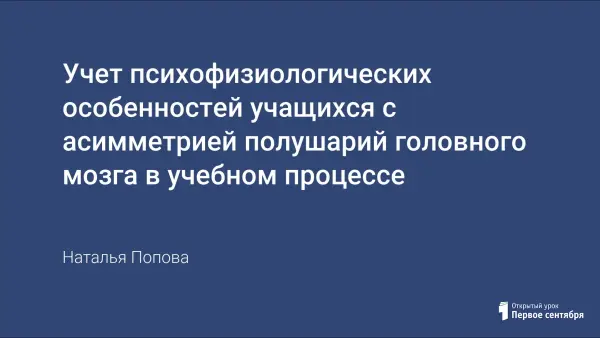 Учет психофизиологических особенностей учащихся с асимметрией полушарий головного мозга в учебном процессе