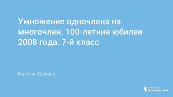 Урок разработан с использованием ЦОР Единой коллекции цифровых образовательных ресурсов и применением интерактивной доски. Отработать умение преобразовывать произведение одночлена и многочлена в многочлен стандартного вида. Содействовать воспитанию интереса к математике, интерес к историческим фактам, стимулировать работу учащихся на уроке, развивать их работоспособность.