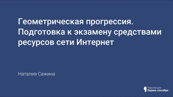 Это обобщающий урок по теме "Геометрическая прогрессия", на котором учащихся опираются на знания, полученные на предыдущих уроках по данной теме. Данный урок готовит учащихся к выпускному экзамену в форме ГИА. Специфика этого урока в том, что на нем отработка навыков проводилась с использованием тестов в сети Интернет.