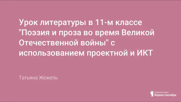 Урок литературы в 11-м классе с использованием ИКТ. Литература периода Великой Отечественной войны исследована достаточно полно и глубоко. Но ребята должны сделать на уроке открытие для себя, должны погрузиться в эпоху, проникнуться духом того времени... В этом им помогут интернет-ресурсы и креативные способности. Результатом деятельности учащихся должен стать учебный проект по самостоятельно выбранной подтеме в рамках общей темы "Поэзия и проза во время Великой Отечественной войны".