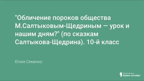 Особенностью урока является создание учащимися краткосрочного литературно-творческого проекта - анализа сказок сатирика, презентации ученических слайдов, театрализации эпизодов произведений. Цель урока – выявить новые смыслы в щедринских сказках, определить факты биографии и творчества, дающие возможность доказать (или опровергнуть) вывод о том, что обличение пороков общества писателем - урок и нашим дням.