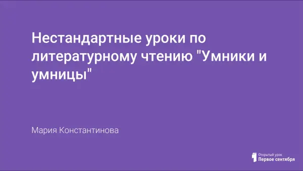 Для развития у учащихся интереса к чтению, формирования читательских умений, читательской самостоятельности, творческой деятельности провожу нестандартные обобщающие уроки по литературному чтению. Они проводятся под лозунгом "Умники и умницы". Эти уроки помогают учащимся постоянно расширять круг чтения, приучают к внимательному чтению, расширяют кругозор, воспитывают чувства сопричастности и переживания, а также развивают способность эмоционально откликаться на события.