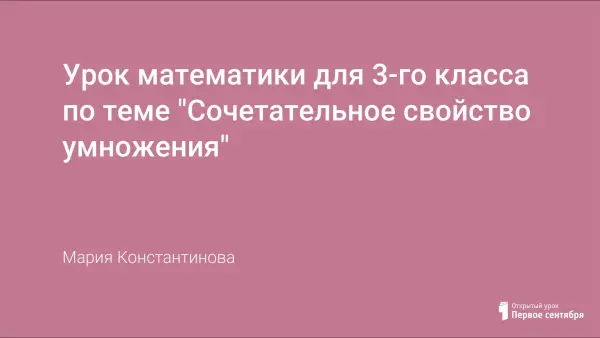 Урок проводится после знакомства учащихся с сочетательным свойством умножения. На этом уроке идёт работа над задачами, где в решении необходимо применить сочетательное свойство умножения.