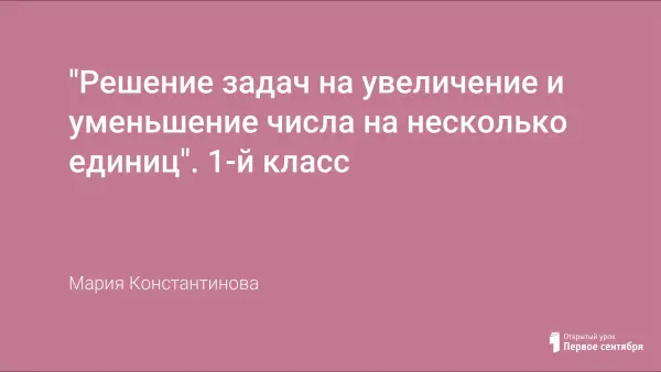 Представлен урок-закрепления материала. На первых двух рассматривались отдельно задачи на увеличение и уменьшение числа на несколько единиц. На этом уроке отрабатываются понятия «больше на» и «меньше на» в сравнении. Благодаря ИКТ выполняется большое количество упражнений и задач на уроке, быстро меняется условие задачи и решение, детям интересно встретиться со сказочными (ветер) и литературными героями (Буратино).