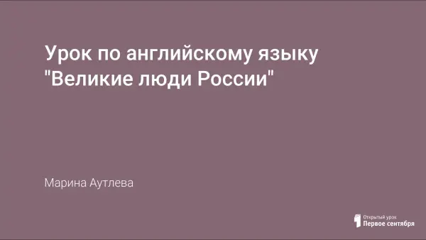 Урок разработан для учащихся 10–11-х классов и направлен на формирование знаний по теме "Великие люди России", повышение коммуникативной компетентности учащихся, совершенствование практических навыков владения лексикой по теме путем привлечения дополнительного материала. Урок проводится с применением компьютерной презентации. Представлены биографии известных людей России.
