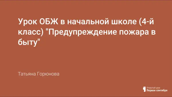 Урок ОБЖ проводится в 4-м классе, может использоваться и на классном часе. Овладеть навыками противопожарной безопасности поведения в доме, первичными действиями при пожаре. Урок содержит практическую работу по свойствам огня.