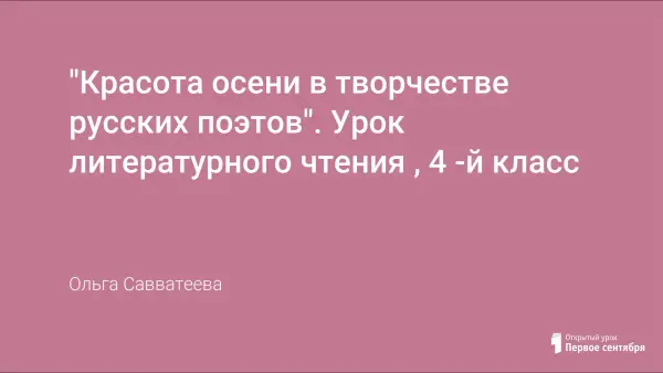 Предлагаю урок по теме "Красота осени в творчестве русских поэтов" в курсе литературного чтения по программе развивающего обучения Л.В.Занкова по учебнику З.И. Романовской "Живое слово" (4-й класс). В течение трёх лет работала в городской творческой лаборатории по теме: "Развитие эмоционально-чувственной сферы у младших школьников в процессе изучения лирических произведений". Разработанные уроки по анализу стихотворений о природе, направлены на создание у учащихся благоприятных условий для глубокого эстетического восприятия живописного образа, нарисованного поэтом с помощью художественных средств языка.