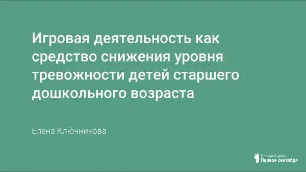 Игровая деятельность как средство снижения уровня тревожности детей старшего дошкольного возраста