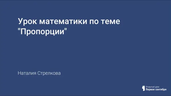 Учащиеся знакомятся с понятиями: "пропорция", "члены пропорции"; "верная и неверная пропорции"; учатся чтению пропорции и составлению пропорций из отношений; знакомятся с основным свойством пропорции.