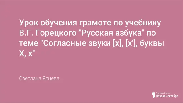 Урок обучения грамоте по учебнику В.Г. Горецкого "Русская азбука". Урок-путешествие. Знакомит со звуками [х], [х'], буквами Х, х. Развивает фонематический слух, обогащает активный словарный запас, развивает мыслительные процессы, внимание, память.