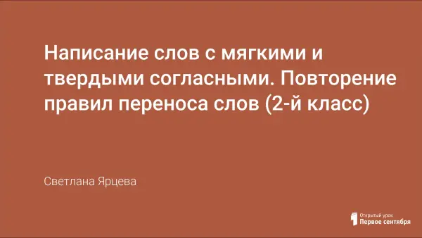Урок по русскому языку во 2-м классе на тему «Написание слов с мягкими и твердыми согласными» классического типа. Учит соотносить звуковую и графическую форму слова и правильно обозначать мягкость и твердость согласных звуков с помощью гласных букв. Формирует навыки точного употребления слов.