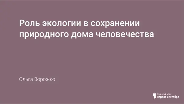 В данной статье дается материал для повторения понятия «экология». На основе презентации активизируется познавательный процесс учащихся, воспитывается любовь к природе, обобщаются знания учащихся о том, как человек влияет на природу и с какой целью создается Красная книга, на основе экологических связей развивается логическое мышление.