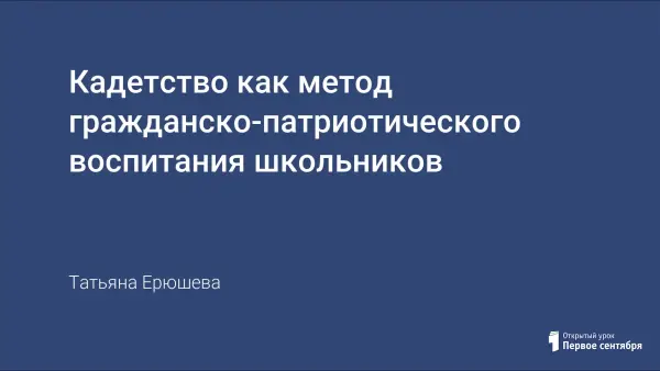 Характерной особенностью кадетской системы воспитания является высокая значимость личности педагога-воспитателя. Сегодня, как никогда, нашему обществу требуется человек с возросшим чувством собственного достоинства, с высоким уровнем самосознания, на первое место встаёт вопрос о создании духовно-нравственной среды воспитания и формирование, в первую очередь, патриотизма личным примером взрослого.