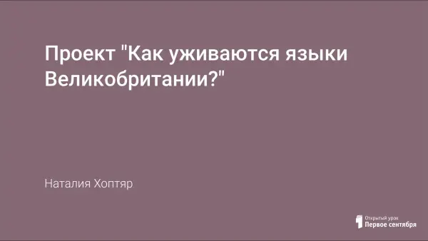 Почему языки Великобритании – английский, валлийский, шотландский, ирландский – не слились в один, ведь территория Соединённого Королевства так мала? Почему англичане, шотландцы, валлийцы, ирландцы были и остаются отдельными народами со своей собственной речью? Цель работы – понять как уживаются языки Великобритании.
